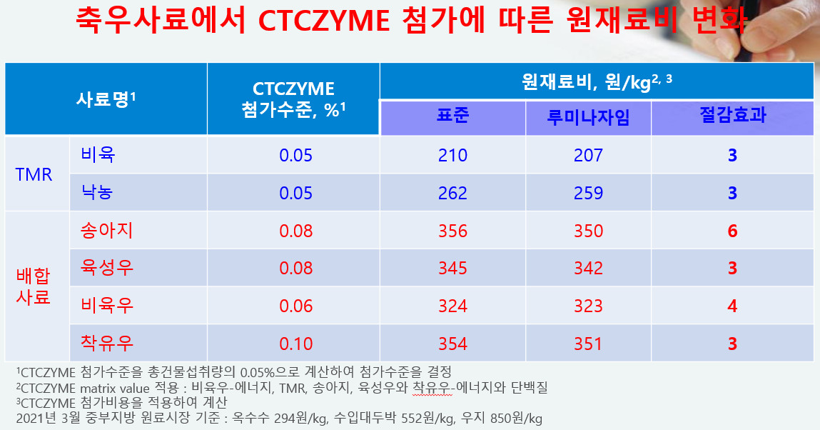 CTCZYME의 사료 원재료비 절감효과 update 본문