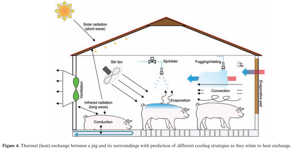 •열손실이 발생하려면 동물의 표면 온도와 기온 사이의 온도 구배가 있어야 합니다. 일반적인 돼지 피부 온도는 32 ~ 36 ° C 사이입니다.