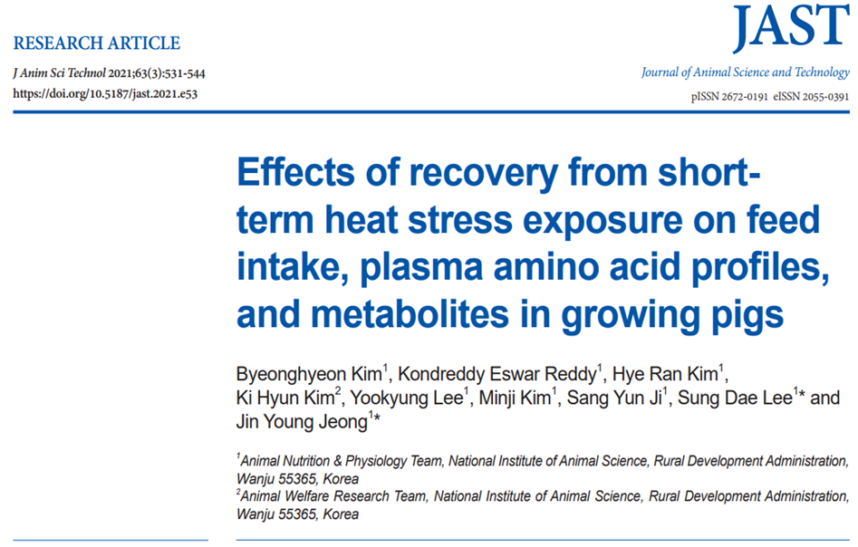 Effects of recovery from short-term heat stress exposure in growing pigs 본문