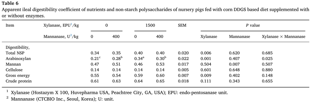 Mannanase 추가는 mannan의 소화율을 증가시켰습니다(표 5).