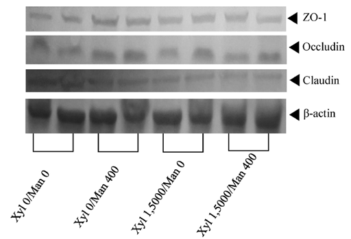 Xylanase 추가로 claudin, occludin 및 ZO-1의 농도를 증가시켰습니다(P<0.05)(표 10).