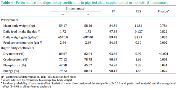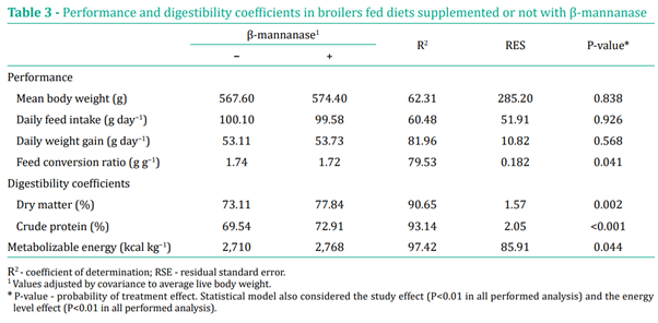 β-mannanase 첨가된 사료는 ME 함량이 2% 더 높았습니다(P = 0.04).