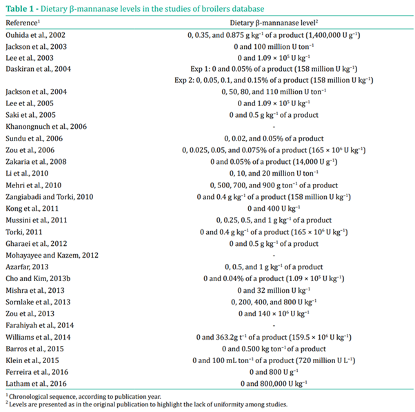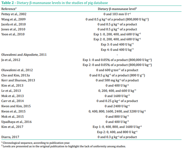 β-mannanase가 더 높은 β-mannan 수준을 포함하는 식이에 보충될 때 더 나은 결과를 나타낸다는 점을 고려할 때 가장 중요한 요소 중 하나입니다(Jacela et al., 2010; Mussini et al., 2011).