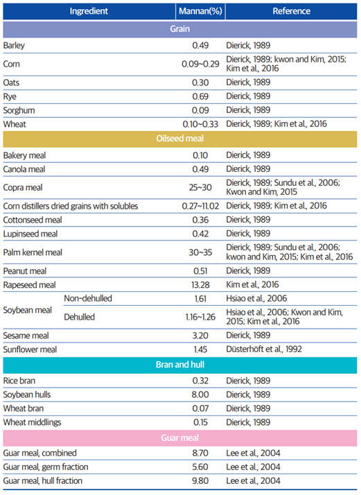 Mannan concentrations of feed ingredients (% dry matter basis)