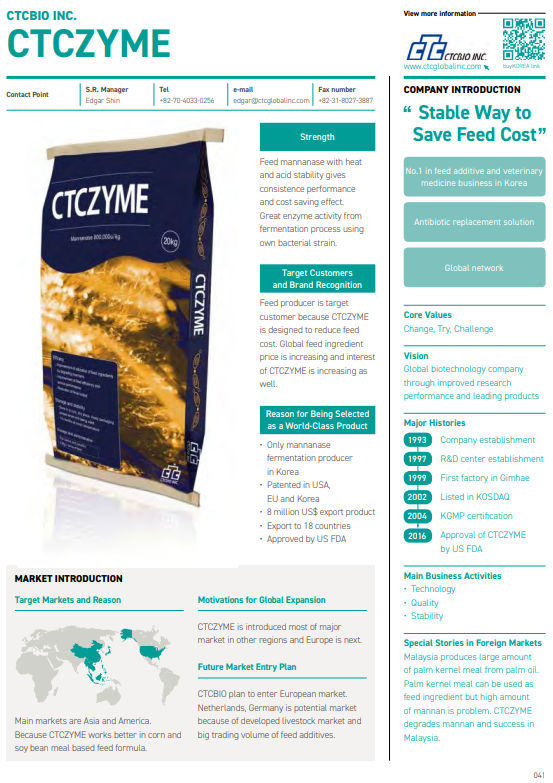 CTCZYME, 2021 세계일류상품 인증 수상 본문