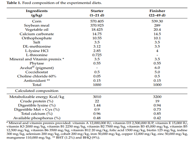Treatment 1 (CON): corn–soy meal + 10 ppm antibiotic growth promoter (Enramycine, Enradin® F80, MSD Animal Health is a division of Merck & Co., Inc., Kenilworth, NJ, USA)