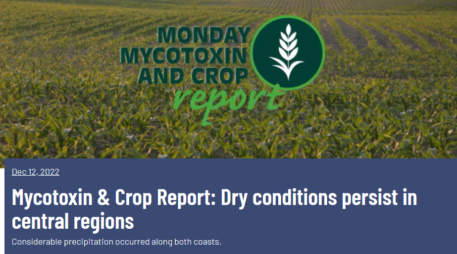 2022년 12월 12일 Neogen's 의 월요일 곰팡이 독소 및 작물 보고서의 이번 주 헤드라인: