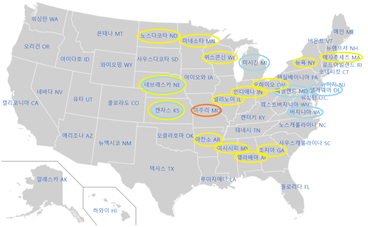 🧪 AL(앨라배마주), IL(일리노이주), KS(캔자스주), NE(네브라스카주); 5–10 ppm