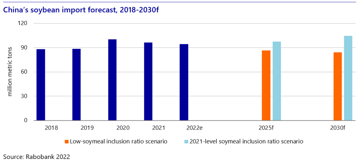 새로운 Rabobank 보고서에 따르면 중국의 대두 수입은 둔화될 것이며, 더 중요한 것은 사료 배합에 낮은 대두박 사용 비율로 2030년은 지속적으로 사용량은 감소할 것으로 예상됩니다. - 가축 생산 증가 둔화, 농업 관행의 지속적인 개선 등