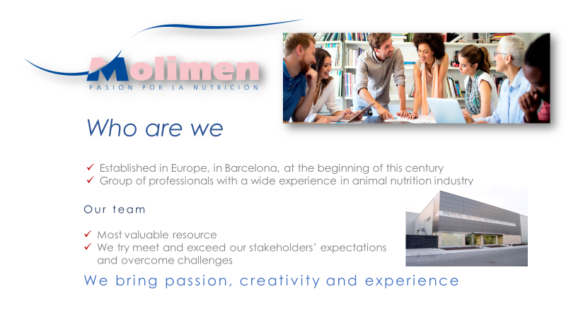 MOLIMEN is a company that was established at the beginning of this century, by a group of professionals with a wide experience in animal nutrition industry.
