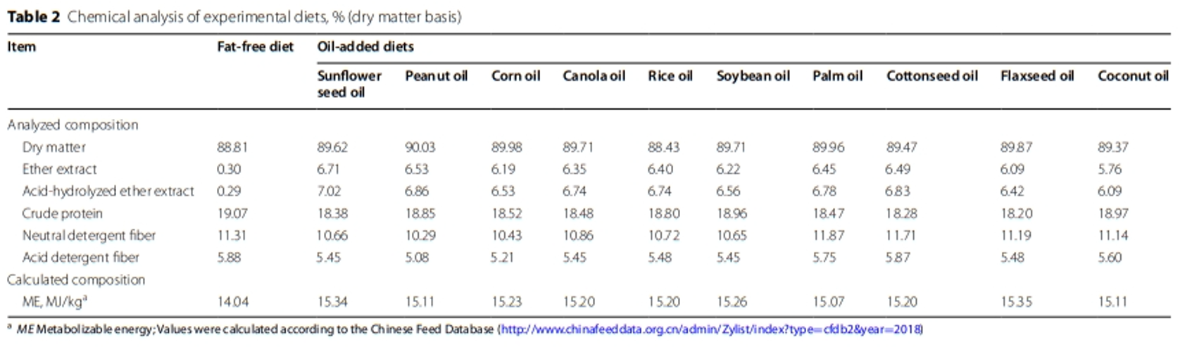 본 실험은 무지방 식이 방법을 사용하여 10가지 기름 원료로부터 지방 및 지방산의 SID를 종합적으로 결정한 최초의 연구였습니다.