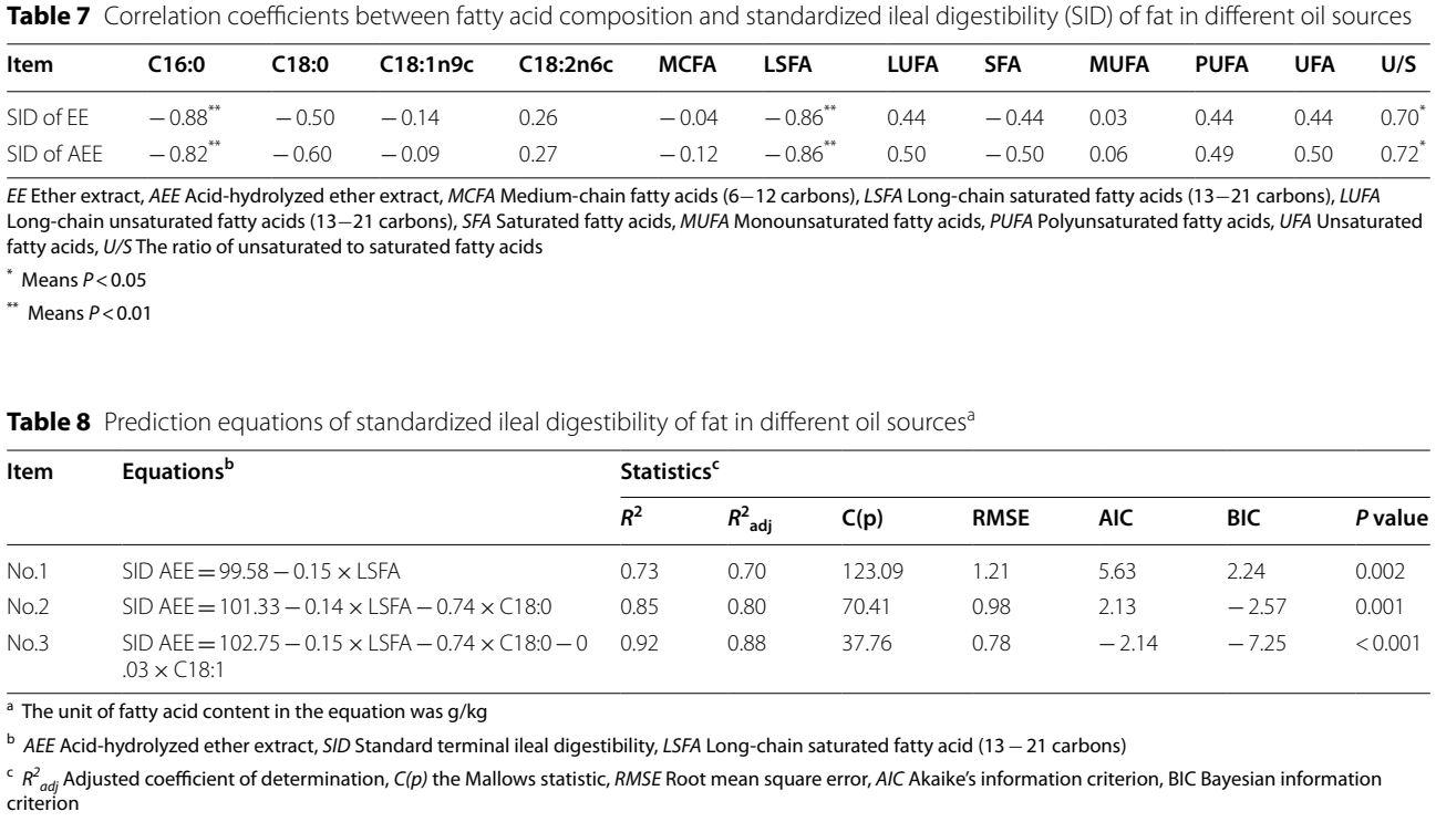 이는 지방산 조성이 성장 중인 돼지에게 급여된 식이유지방원의 지방 SID를 예측하는 데 사용될 수 있음을 나타냅니다.