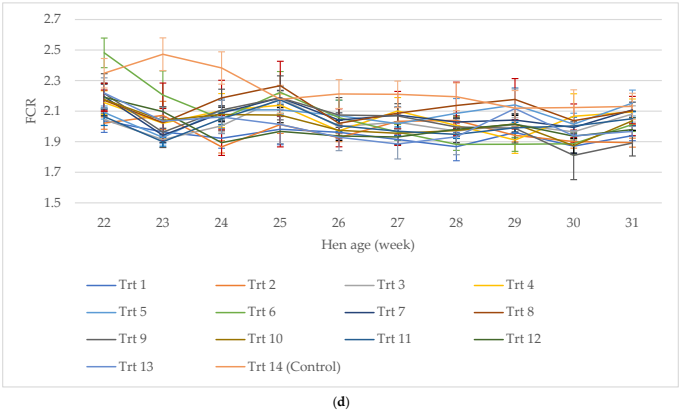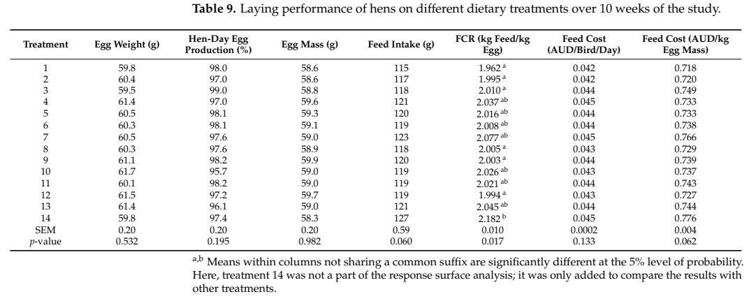 - 사료요구율(FCR) 개선: 사료 효율 향상으로 인해 동일한 산란량을 위해 적은 사료가 소비됨.
