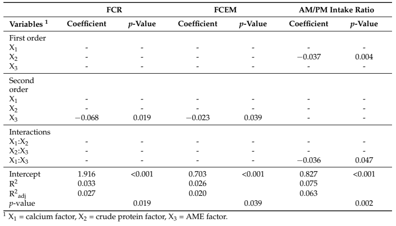 이 연구에서는 Box–Behnken 반응표면설계법(Box–Behnken Response Surface Design)을 활용하여, AM/PM 급이에서의 단백질, 칼슘, 대사가능에너지(AME) 수준을 최적화하고자 하였습니다.