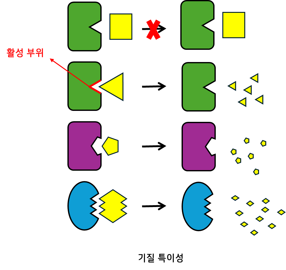 - 세포 안에서 만들어지는 고분자 생체 촉매로, 각종 화학 반응의 속도를 빠르게 하는 단백질