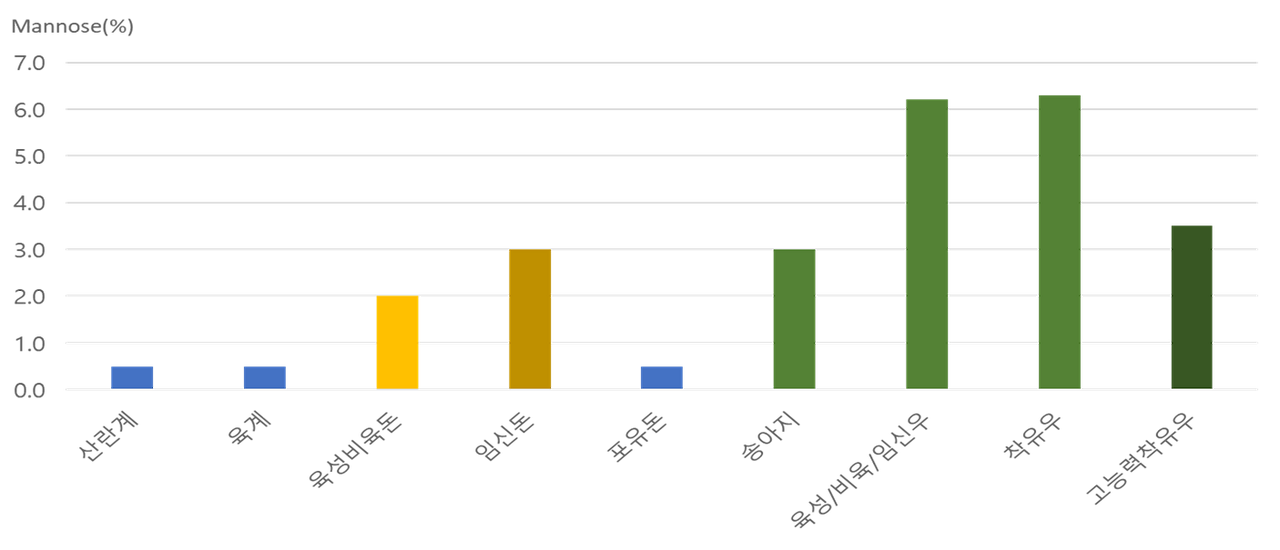 - 사료 내 mannan 함량이 3% 이상인 축종부터 우선 적용
