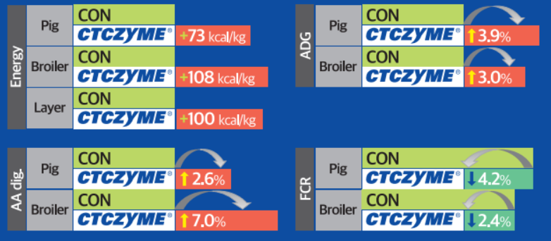 Supplementation of CTCZYME (0.05%) on animals