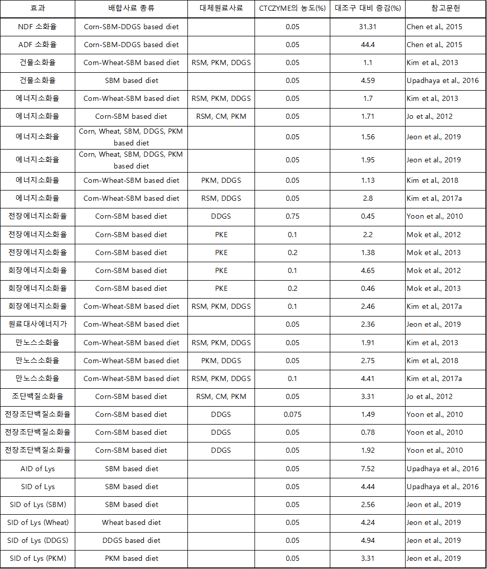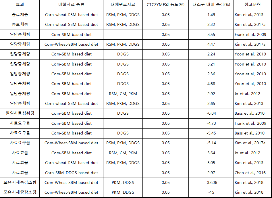 Research data on the effect of adding CTCZYME in pig feed 본문